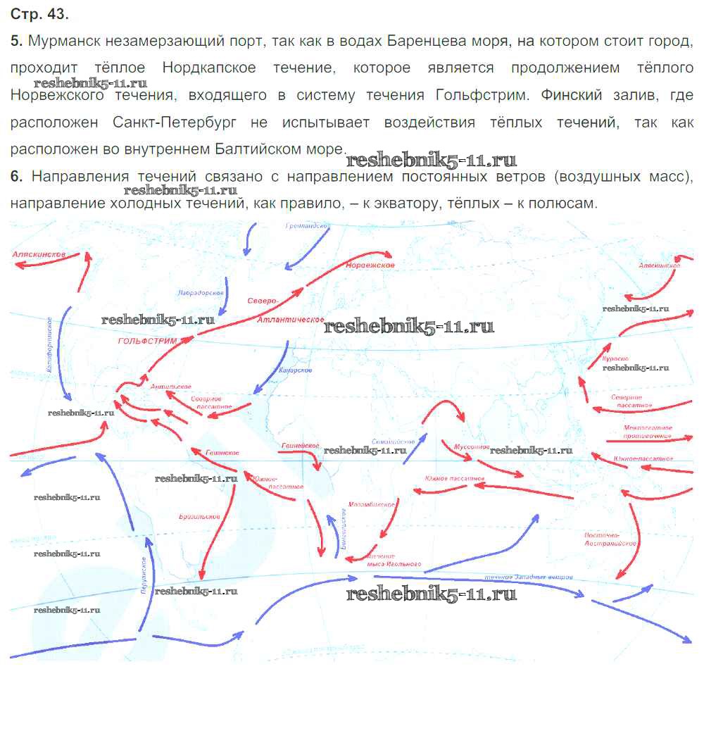 Готовая домашняя работа с ответами по Географии за 6 класс Румянцев, Ким, Климанова Рабочая тетрадь Вертикаль Дрофа 2015 ФГОС - Страницы тетради 43