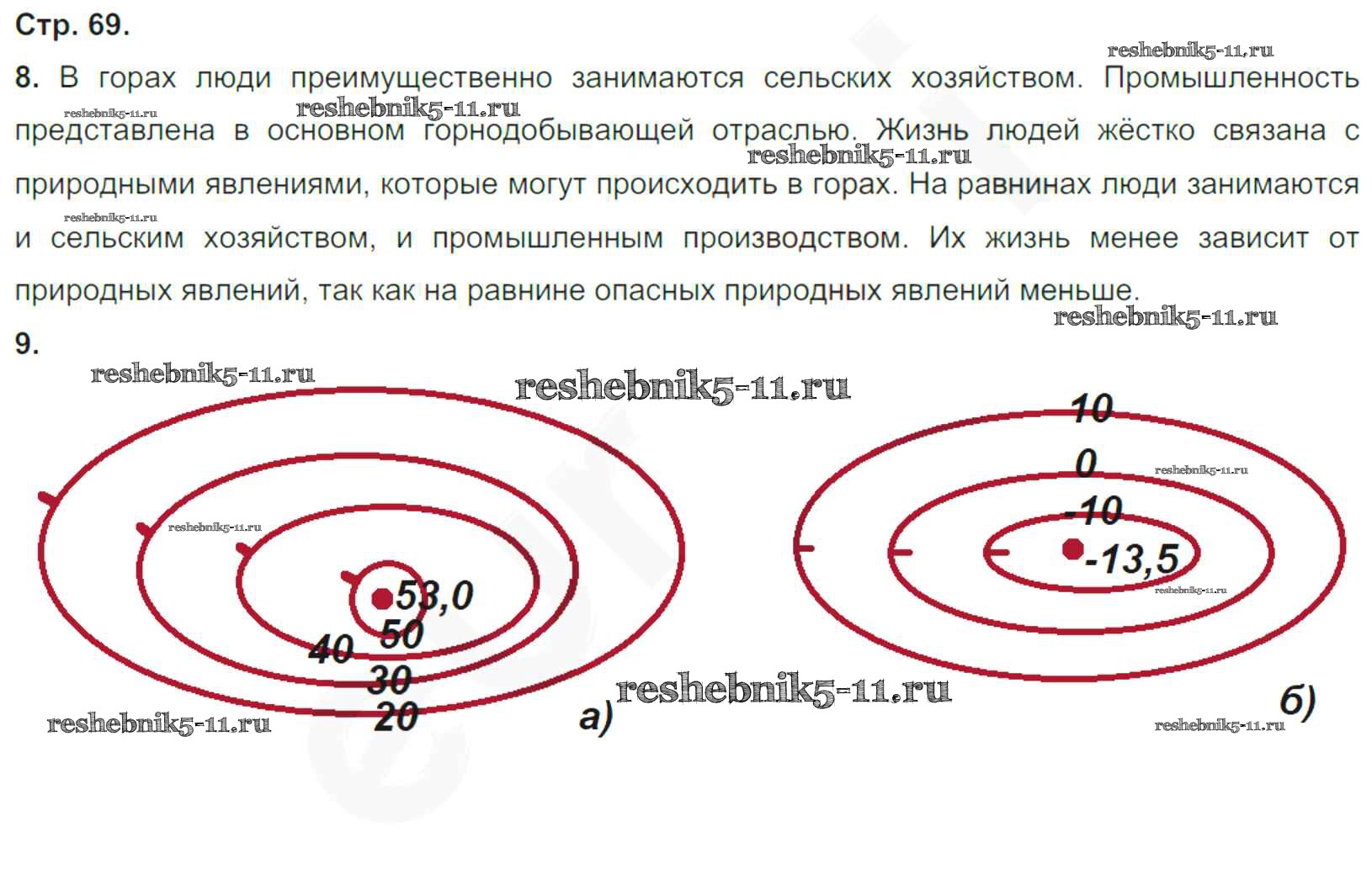 Готовая домашняя работа с ответами по Географии за 6 класс Румянцев, Ким, Климанова Рабочая тетрадь Вертикаль Дрофа 2015 ФГОС - Страницы тетради 69