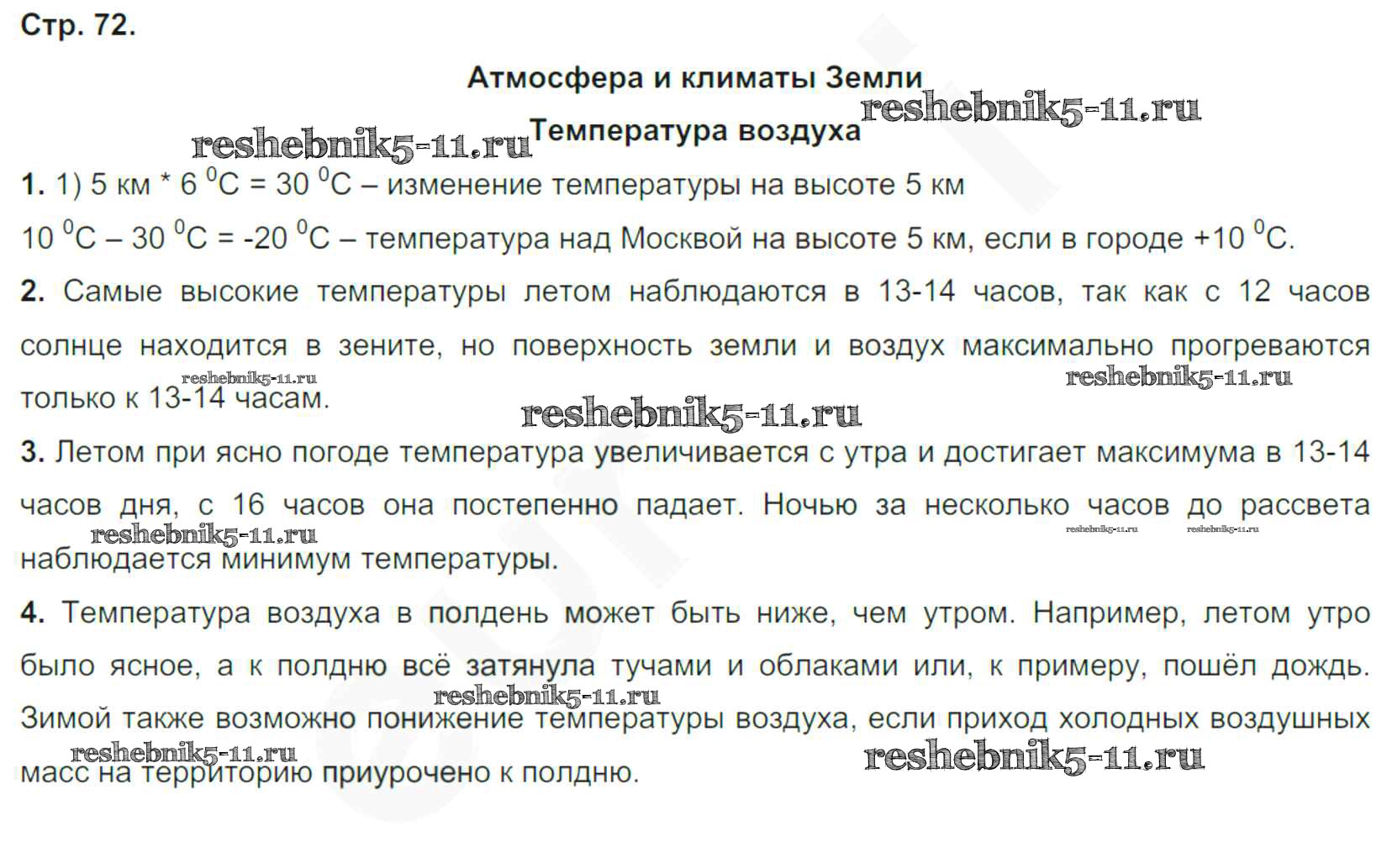 Готовая домашняя работа с ответами по Географии за 6 класс Румянцев, Ким, Климанова Рабочая тетрадь Вертикаль Дрофа 2015 ФГОС - Страницы тетради 72
