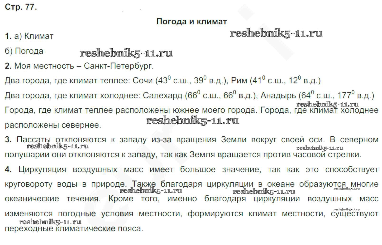 Готовая домашняя работа с ответами по Географии за 6 класс Румянцев, Ким, Климанова Рабочая тетрадь Вертикаль Дрофа 2015 ФГОС - Страницы тетради 77