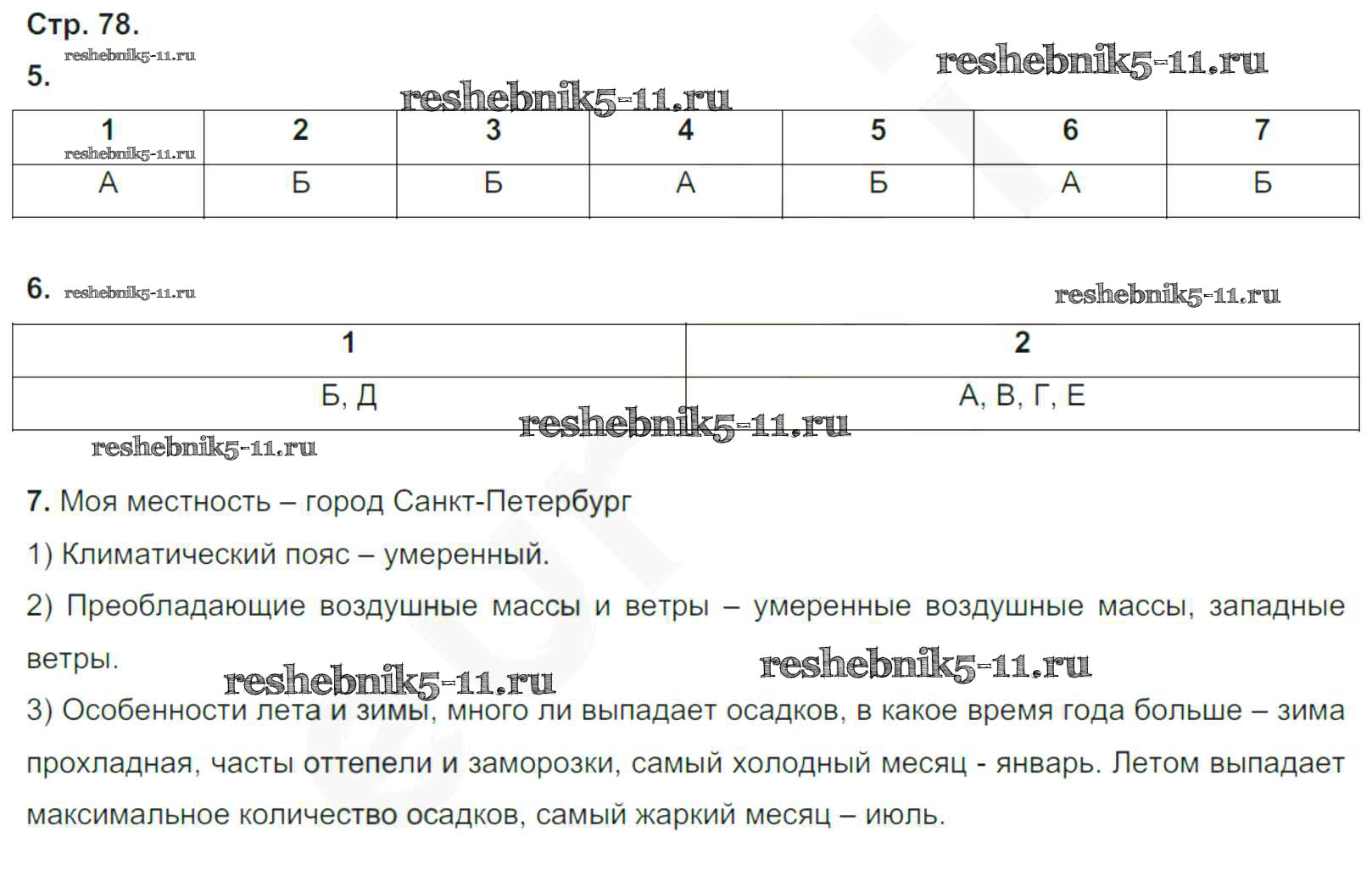 Готовая домашняя работа с ответами по Географии за 6 класс Румянцев, Ким, Климанова Рабочая тетрадь Вертикаль Дрофа 2015 ФГОС - Страницы тетради 78