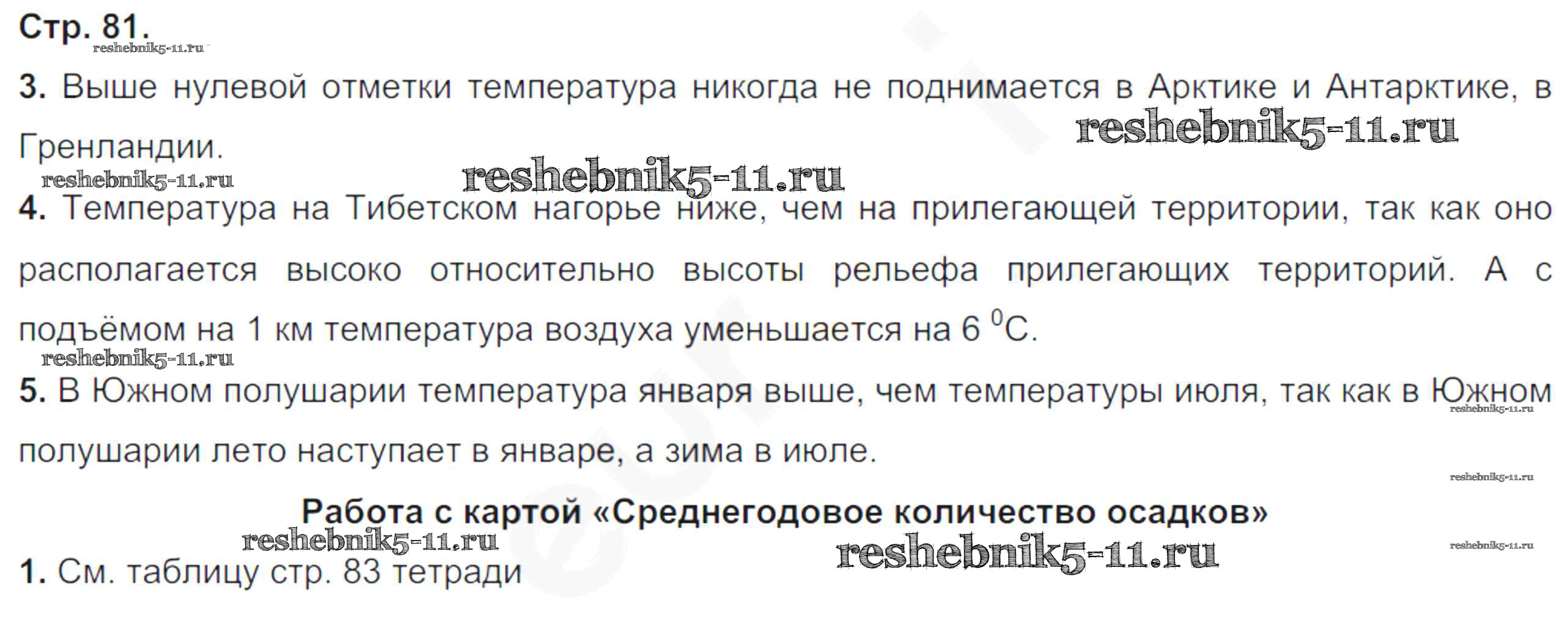 Готовая домашняя работа с ответами по Географии за 6 класс Румянцев, Ким, Климанова Рабочая тетрадь Вертикаль Дрофа 2015 ФГОС - Страницы тетради 81