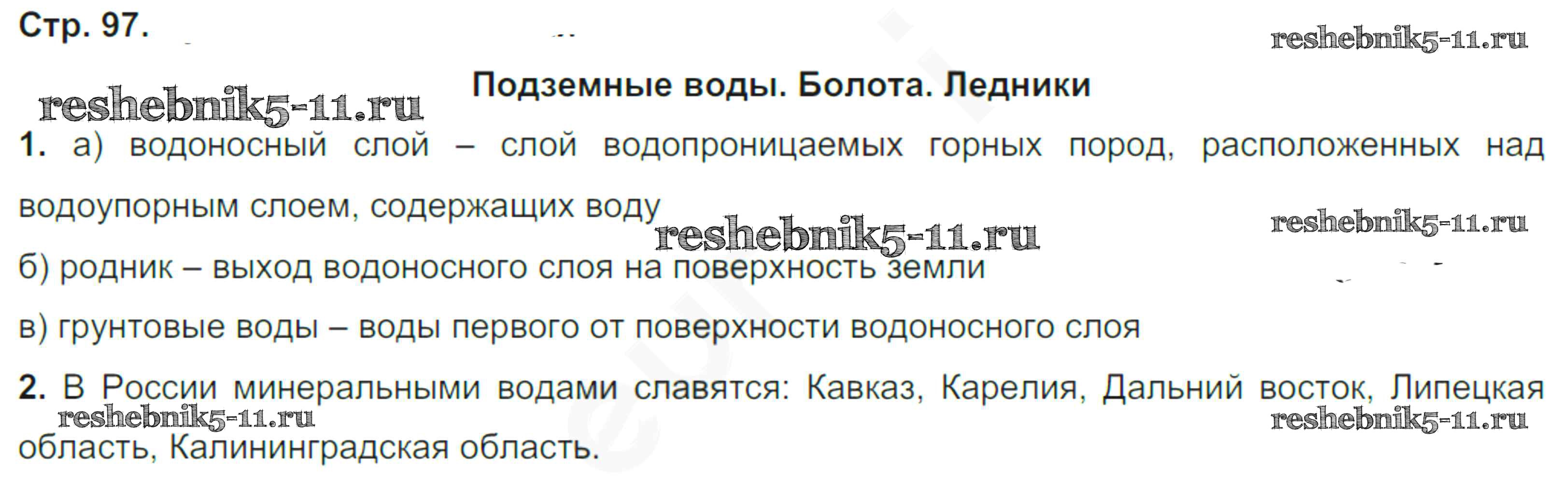 Готовая домашняя работа с ответами по Географии за 6 класс Румянцев, Ким, Климанова Рабочая тетрадь Вертикаль Дрофа 2015 ФГОС - Страницы тетради 97