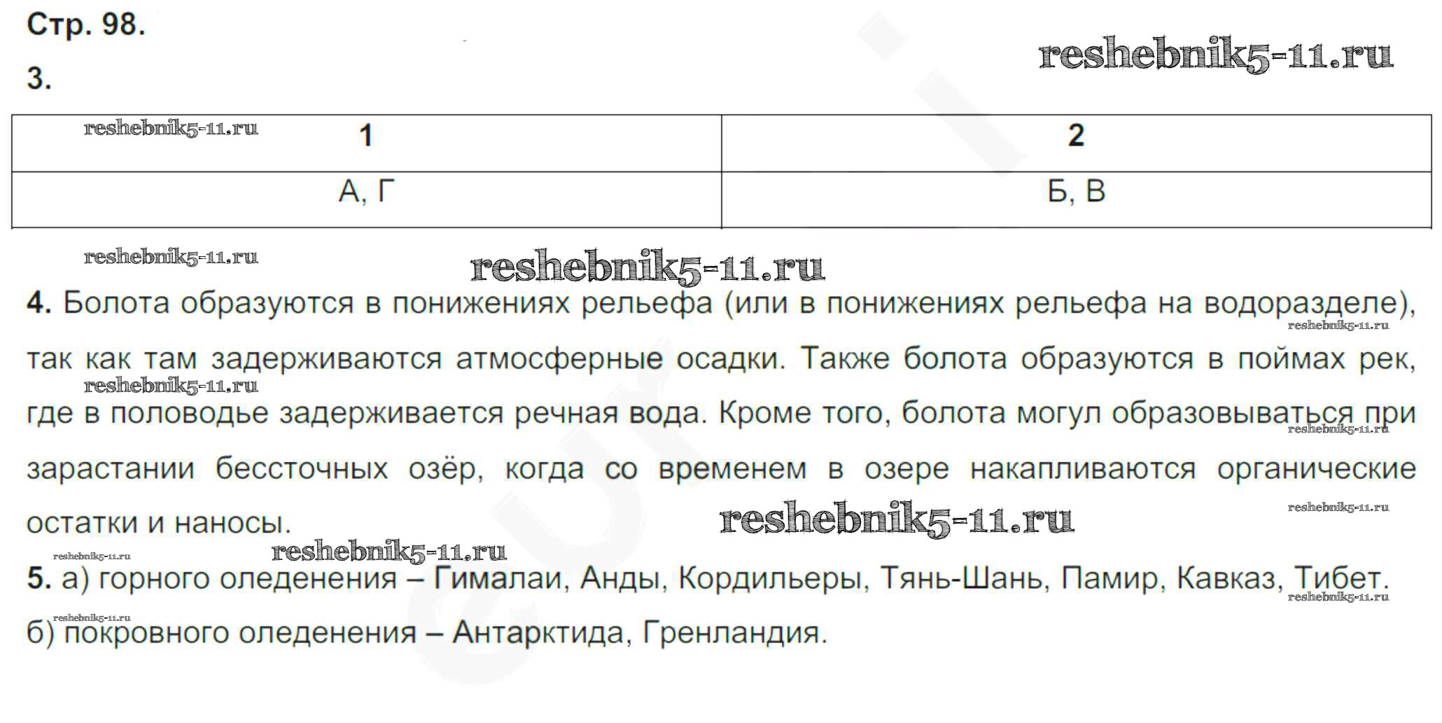 Готовая домашняя работа с ответами по Географии за 6 класс Румянцев, Ким, Климанова Рабочая тетрадь Вертикаль Дрофа 2015 ФГОС - Страницы тетради 98