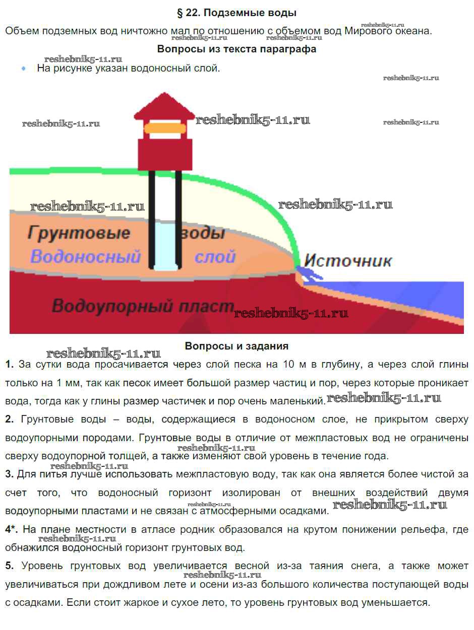 Готовая домашняя работа с ответами по Географии за 6 класс Герасимова, Неклюкова Учебник Вертикаль Дрофа 2019 ФГОС - Параграфы §22. Подземные воды