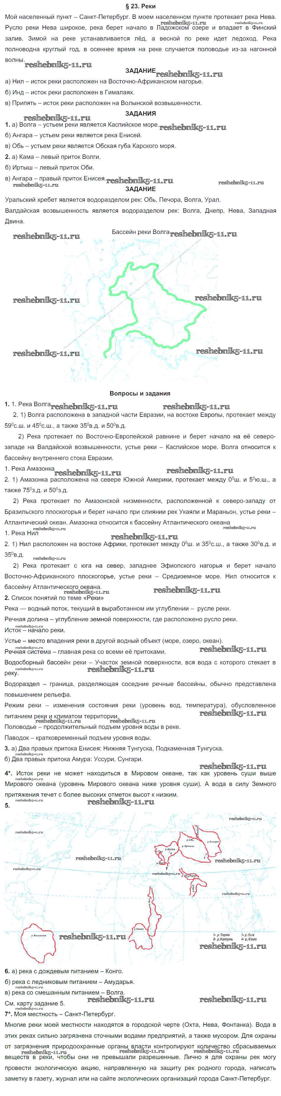 Готовая домашняя работа с ответами по Географии за 6 класс Герасимова, Неклюкова Учебник Вертикаль Дрофа 2019 ФГОС - Параграфы §23. Реки