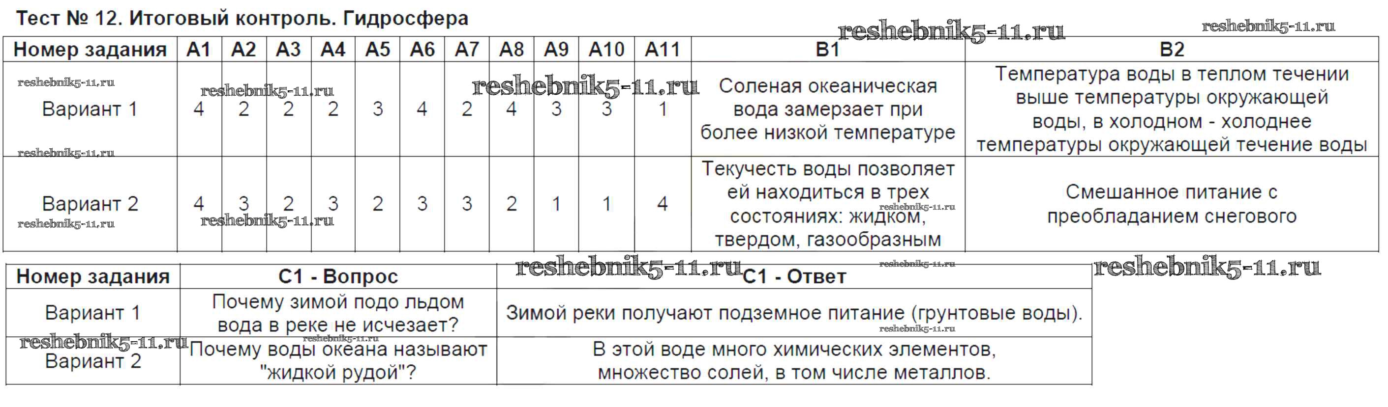 Решебник / тест / тест-12. Итоговый контроль. Гидросфера