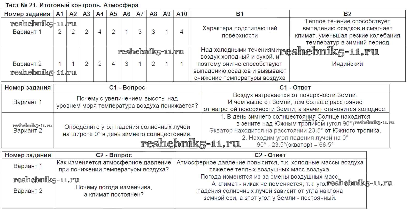 Решебник / тест / тест-21. Итоговый контроль. Атмосфера