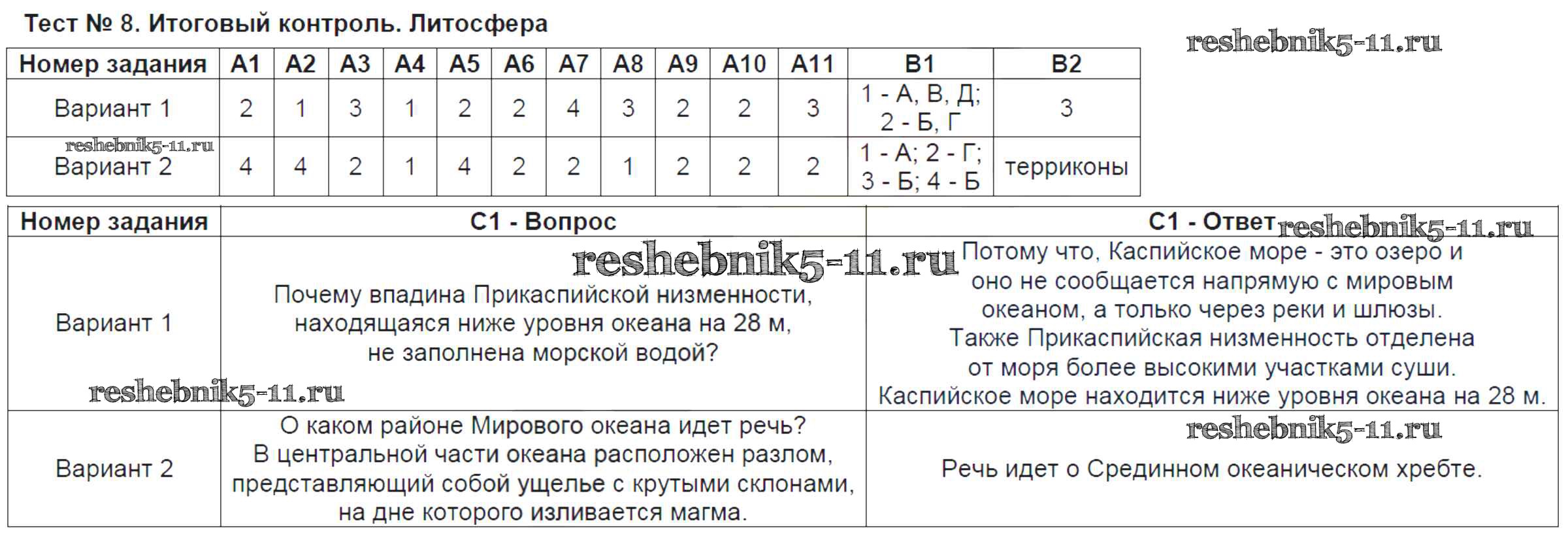 Решебник / тест / тест-8. Итоговый контроль. Литосфера