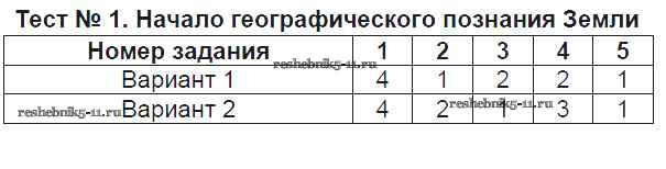 Готовая домашняя работа с ответами по Географии за 6 класс Пятунина, Пятунин Тесты УМК Экзамен 2017 ФГОС - Тесты Тест-1. Начало географического познания Земли