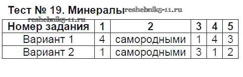 Готовая домашняя работа с ответами по Географии за 6 класс Пятунина, Пятунин Тесты УМК Экзамен 2017 ФГОС - Тесты Тест-19. Минералы