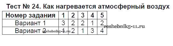 Готовая домашняя работа с ответами по Географии за 6 класс Пятунина, Пятунин Тесты УМК Экзамен 2017 ФГОС - Тесты Тест-24. Как нагревается атмосферный воздух