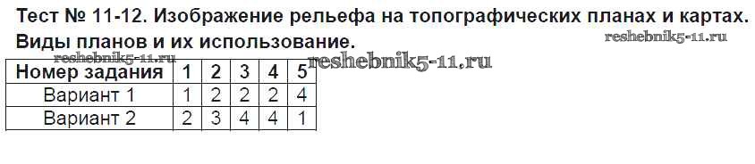 Готовая домашняя работа с ответами по Географии за 6 класс Пятунина, Пятунин Тесты УМК Экзамен 2017 ФГОС - Тесты Тест-11-12. Изображение рельефа на топографических планах и картах