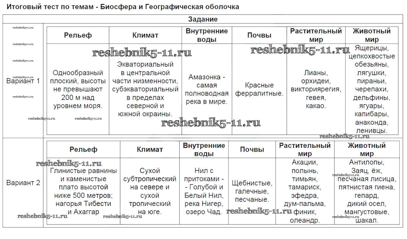 Готовая домашняя работа с ответами по Географии за 6 класс Пятунина, Пятунин Тесты УМК Экзамен 2017 ФГОС - Итоговые тесты Итоговый тест по темам - Биосфера и Географическая оболочка