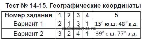 Готовая домашняя работа с ответами по Географии за 6 класс Пятунина, Пятунин Тесты УМК Экзамен 2017 ФГОС - Тесты Тест-14-15. Географические координаты