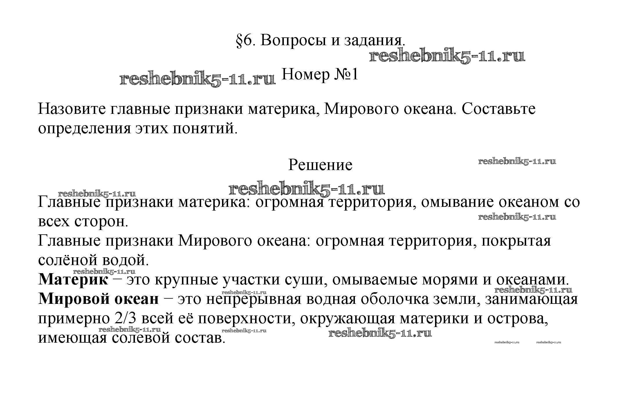 Готовая домашняя работа с ответами по Географии за 5, 6 класс Климанова, Климанов, Ким Учебник Вертикаль Дрофа 2017 ФГОС - Вопросы и задания 1