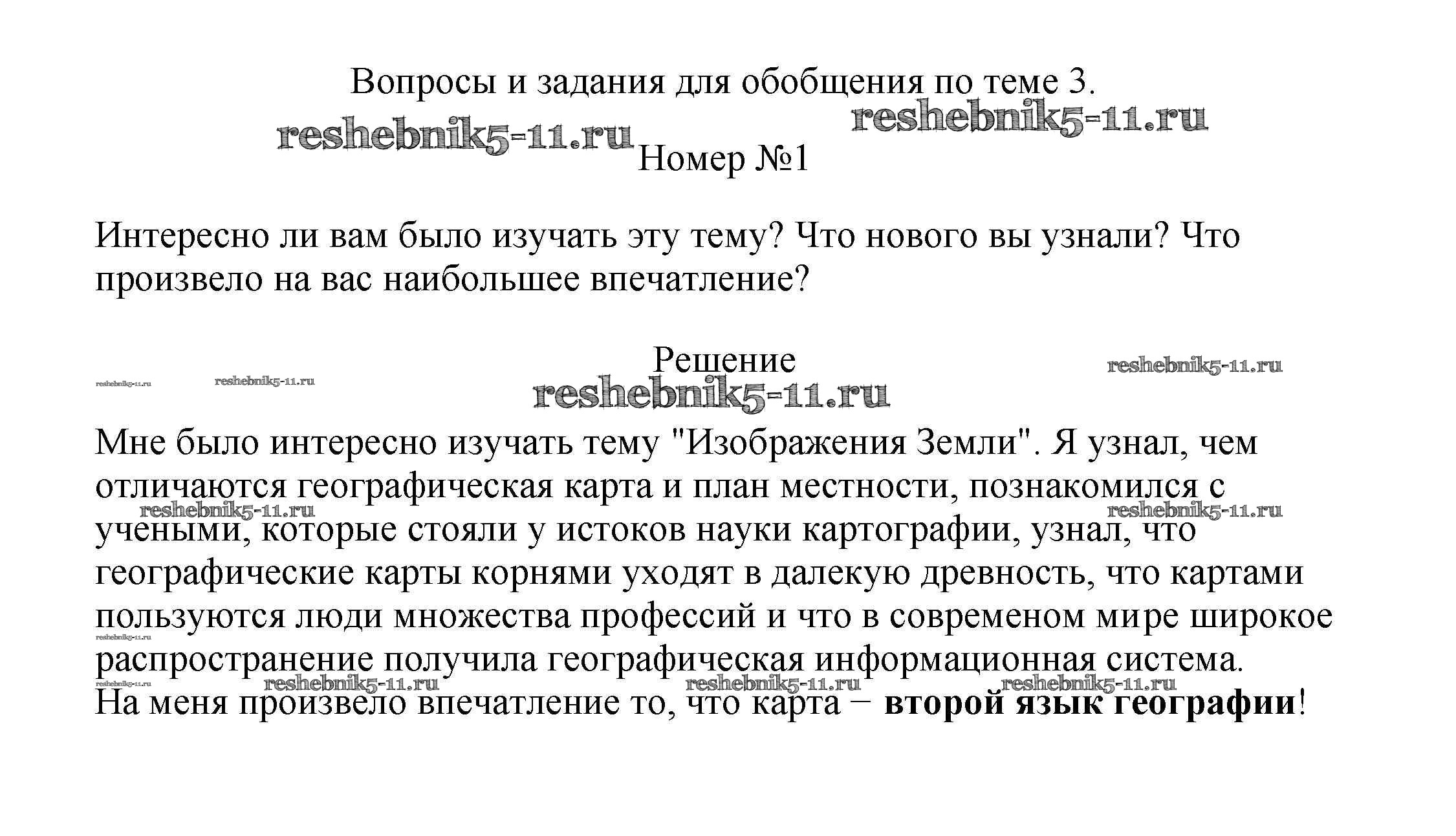 Готовая домашняя работа с ответами по Географии за 5, 6 класс Климанова, Климанов, Ким Учебник Вертикаль Дрофа 2017 ФГОС - Вопросы и задания для обобщения по теме 3 1