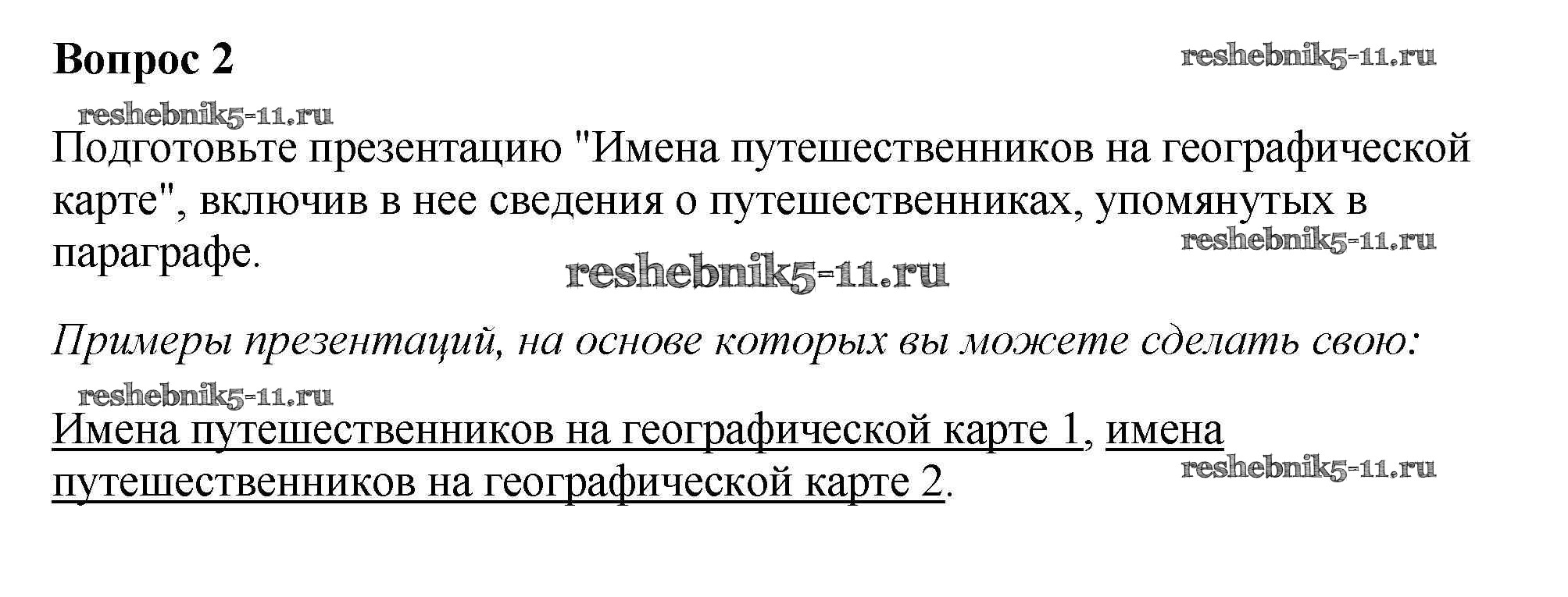 Готовая домашняя работа с ответами по Географии за 5, 6 класс Климанова, Климанов, Ким Учебник Вертикаль Дрофа 2017 ФГОС - Вопросы и задания 2