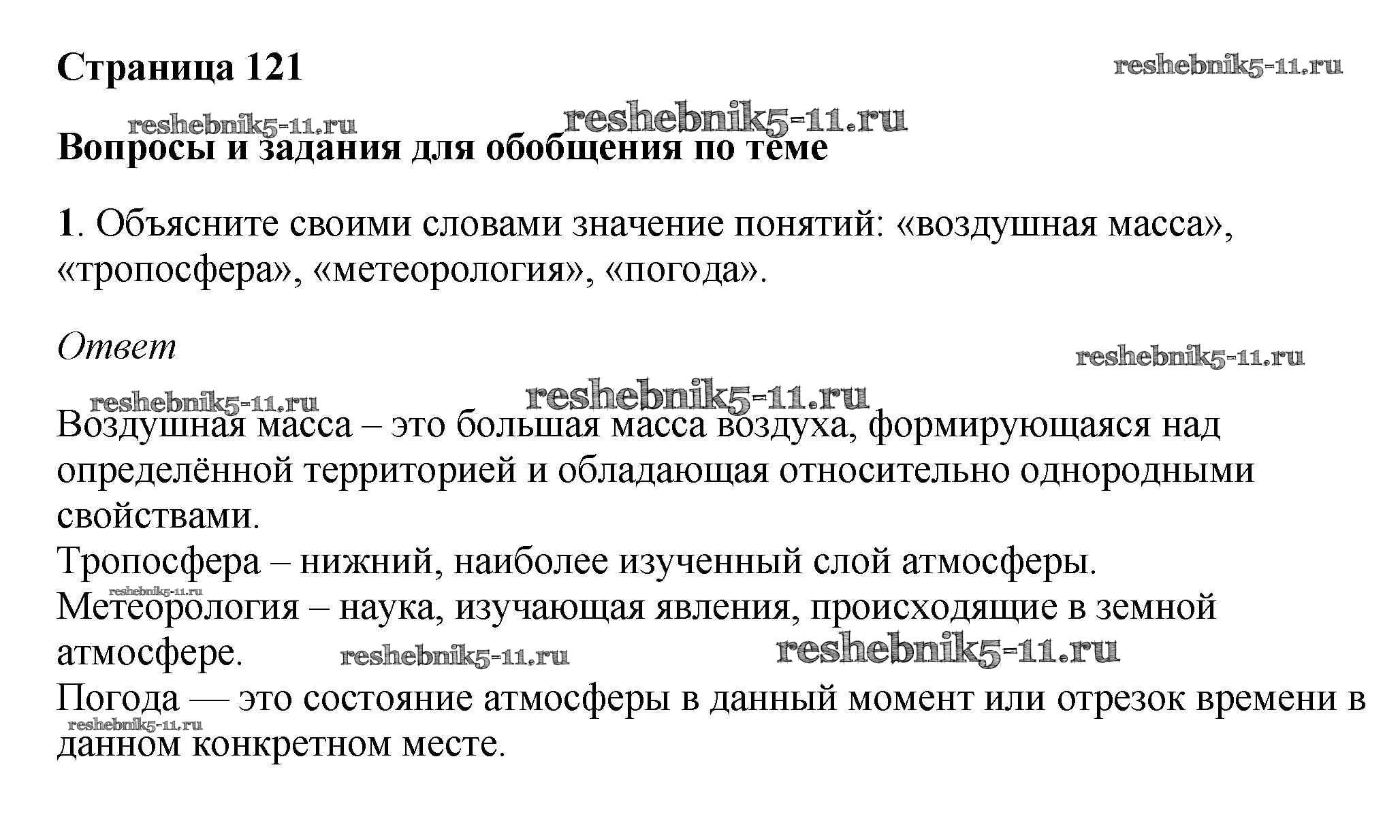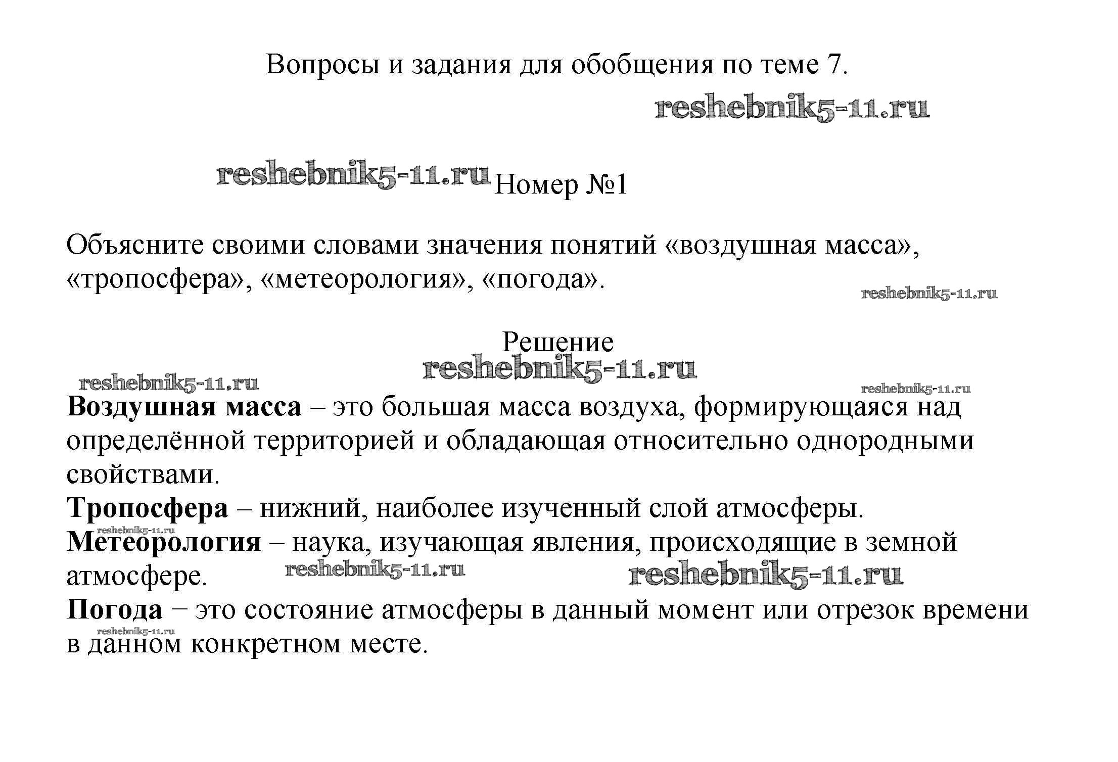 Готовая домашняя работа с ответами по Географии за 5, 6 класс Климанова, Климанов, Ким Учебник Вертикаль Дрофа 2017 ФГОС - Вопросы и задания для обобщения по теме 7 1