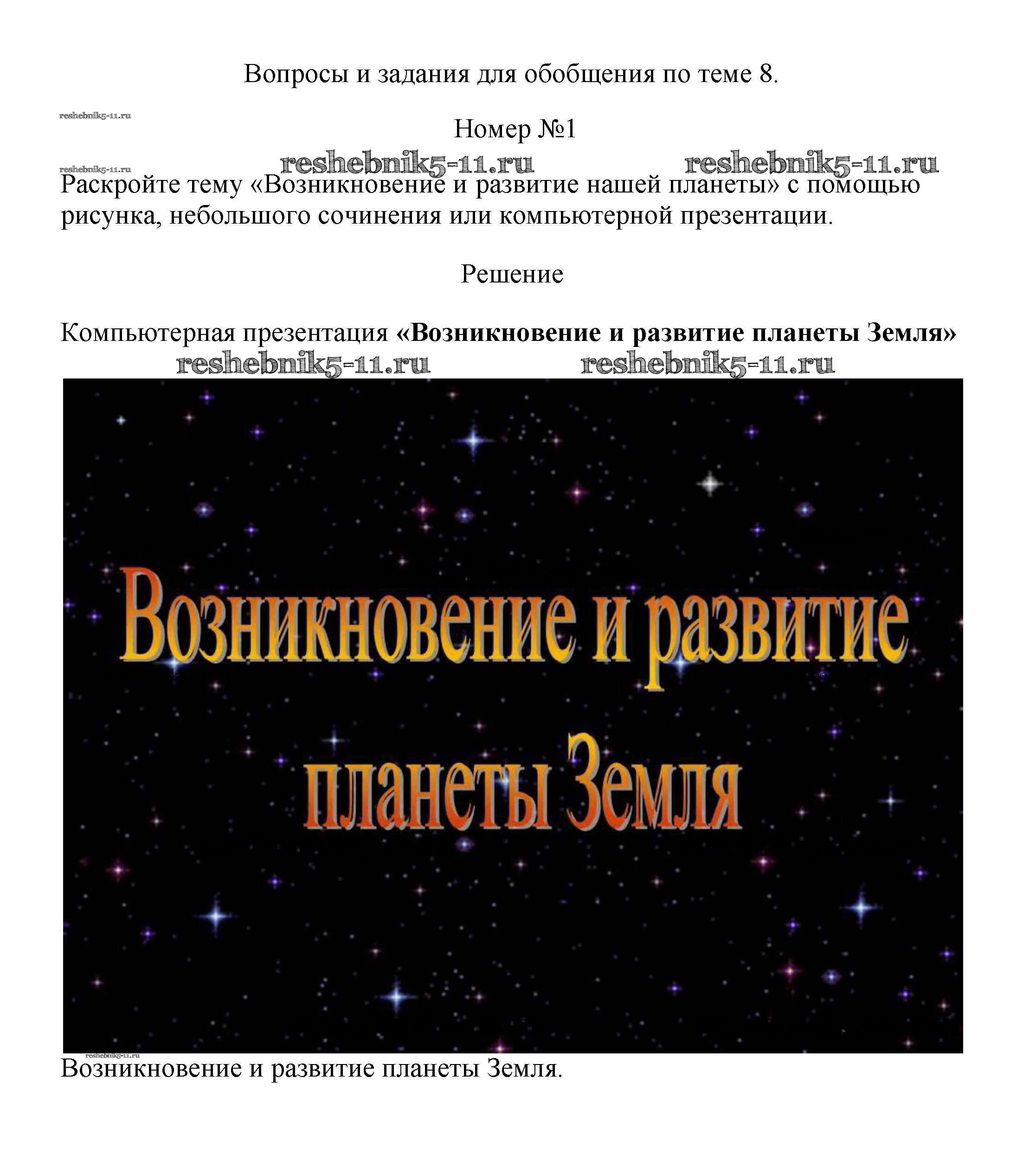 Готовая домашняя работа с ответами по Географии за 5, 6 класс Климанова, Климанов, Ким Учебник Вертикаль Дрофа 2017 ФГОС - Вопросы и задания для обобщения по теме 8 1