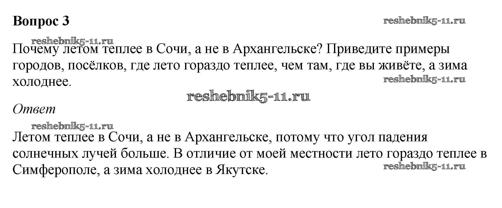 Готовая домашняя работа с ответами по Географии за 5, 6 класс Климанова, Климанов, Ким Учебник Вертикаль Дрофа 2017 ФГОС - Вопросы и задания 3