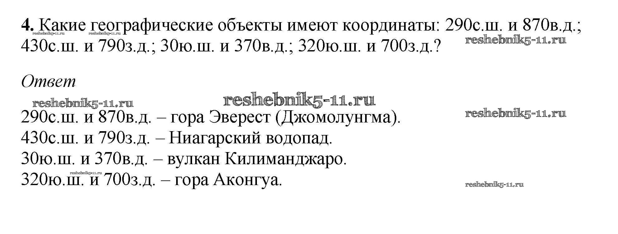 Готовая домашняя работа с ответами по Географии за 5, 6 класс Климанова, Климанов, Ким Учебник Вертикаль Дрофа 2017 ФГОС - Вопросы и задания для обобщения по разделу 4 4