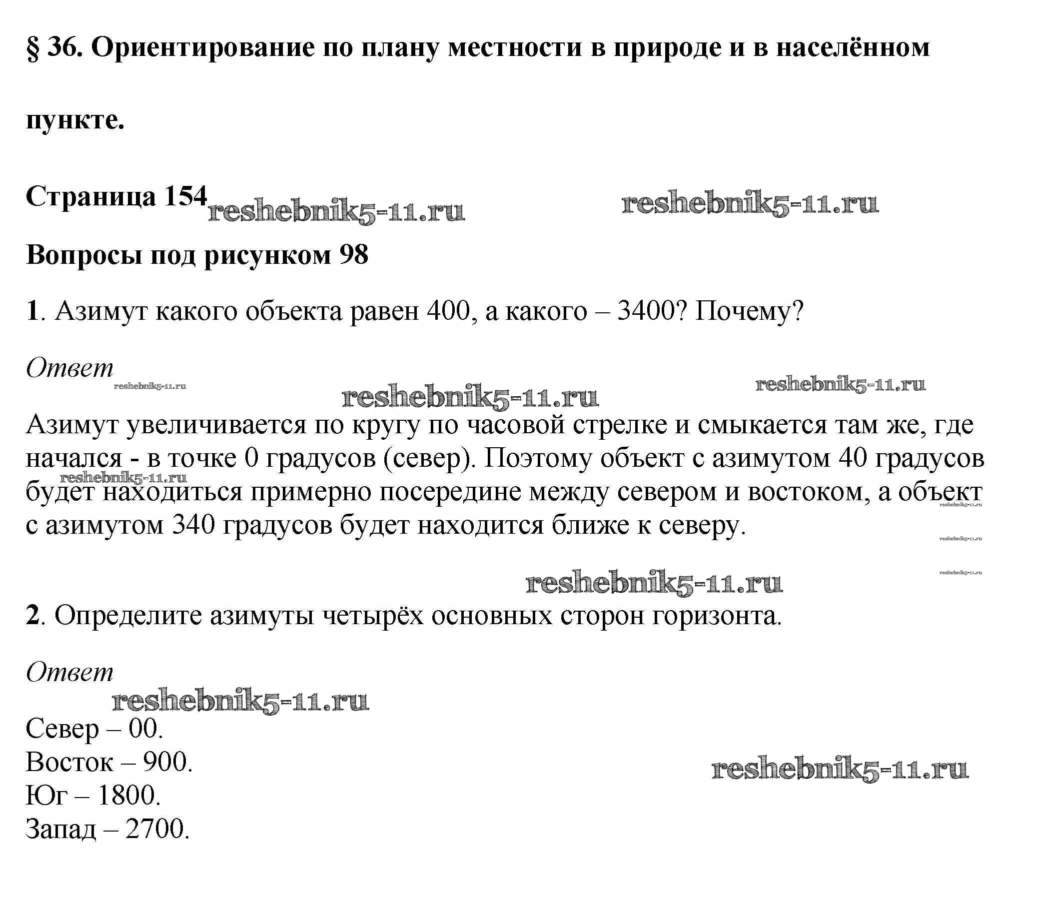 Готовая домашняя работа с ответами по Географии за 5, 6 класс Климанова, Климанов, Ким Учебник Вертикаль Дрофа 2017 ФГОС - Вопросы к рисункам рис. 98
