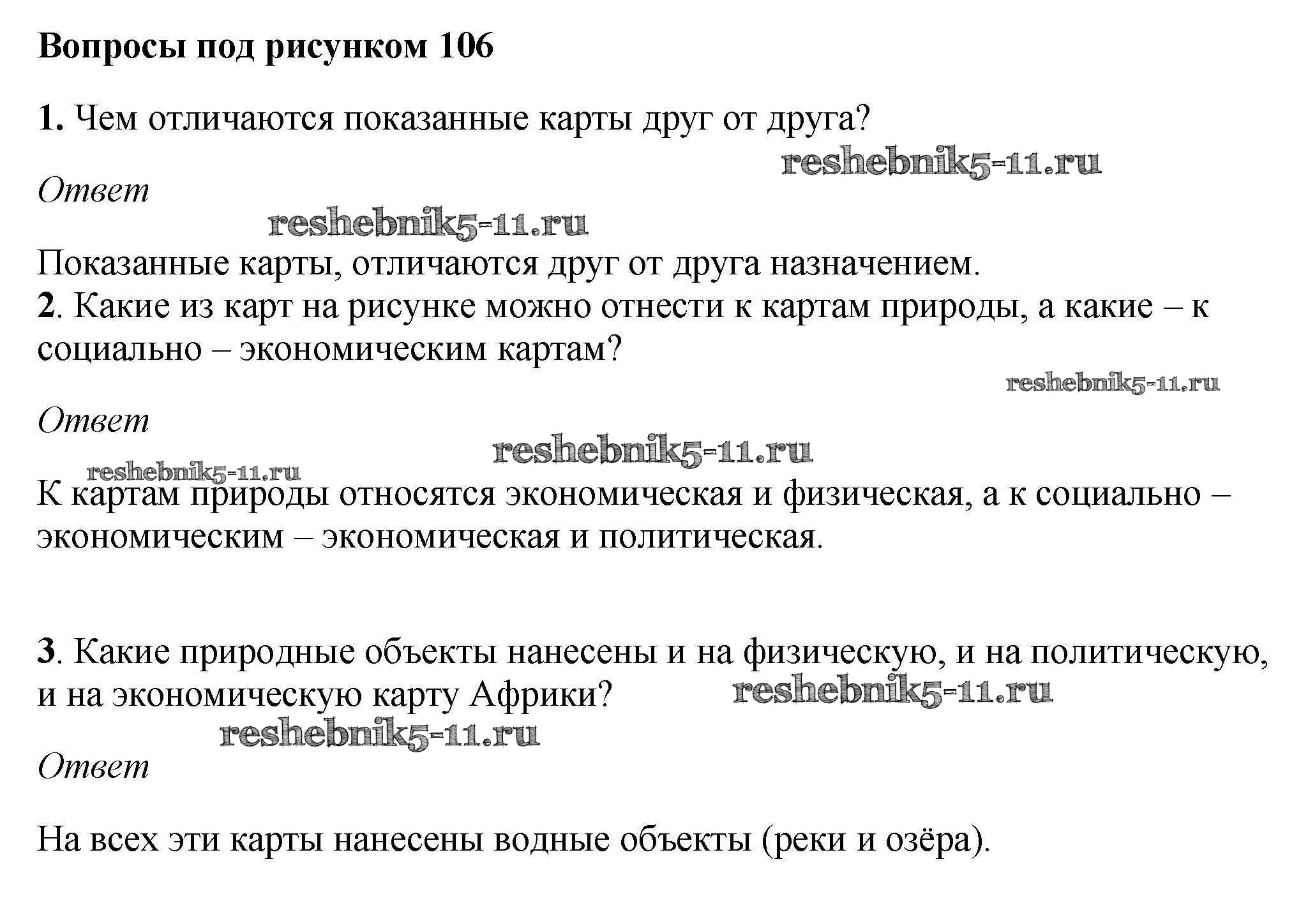 Готовая домашняя работа с ответами по Географии за 5, 6 класс Климанова, Климанов, Ким Учебник Вертикаль Дрофа 2017 ФГОС - Вопросы к рисункам рис. 106