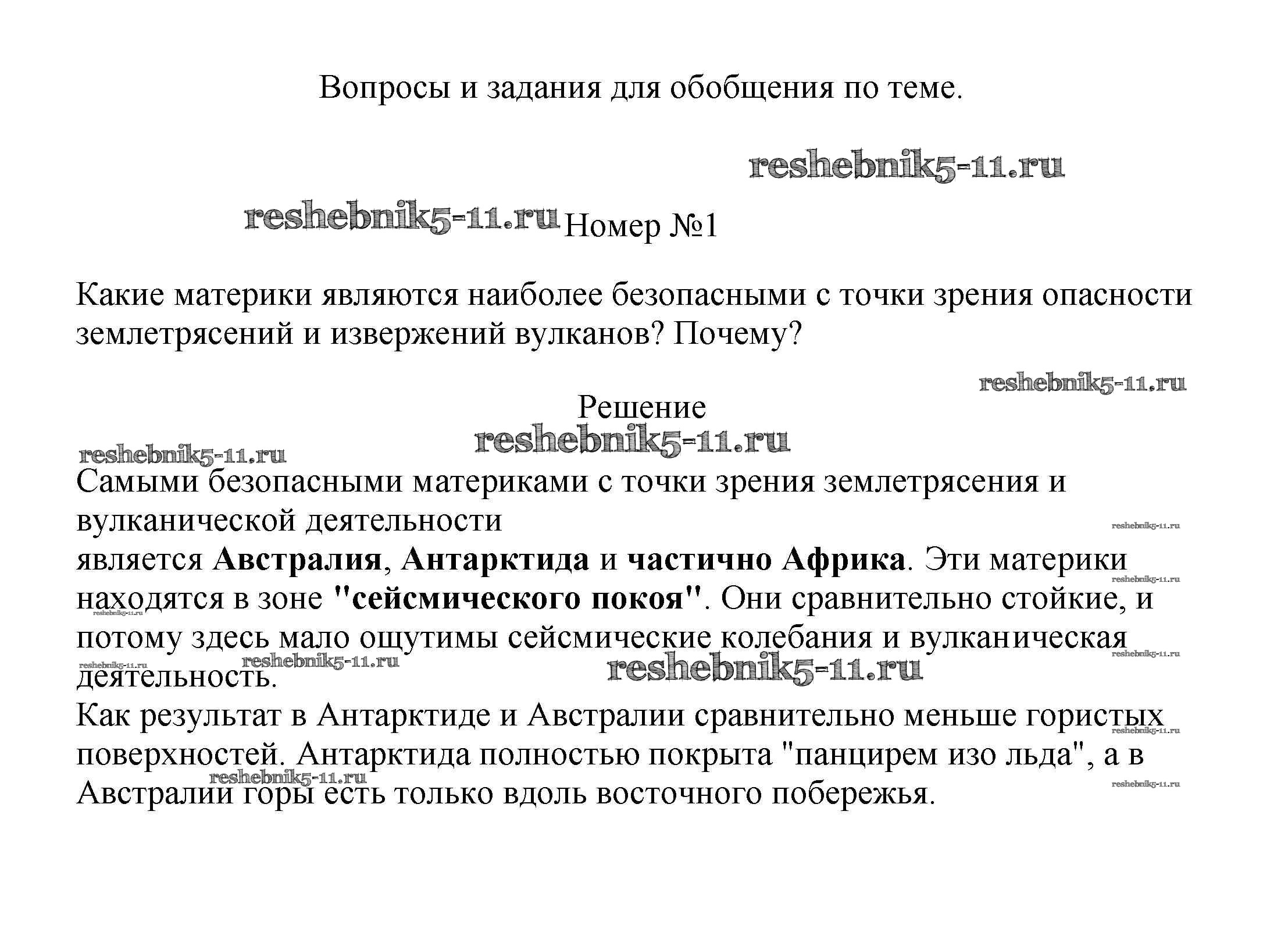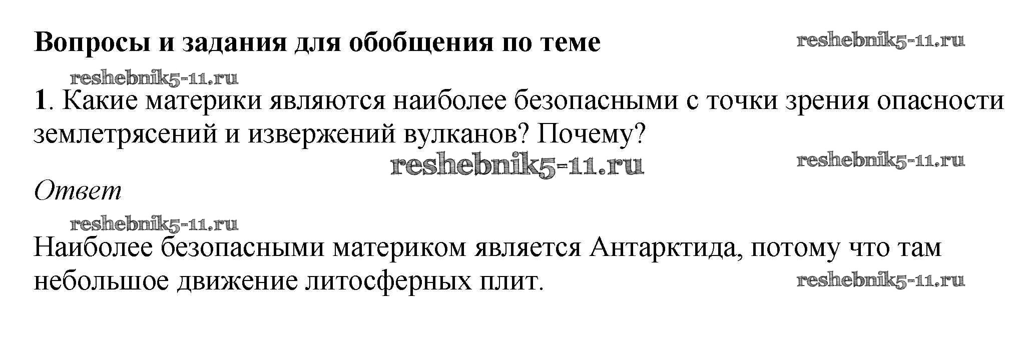 Готовая домашняя работа с ответами по Географии за 5, 6 класс Климанова, Климанов, Ким Учебник Вертикаль Дрофа 2017 ФГОС - Вопросы и задания для обобщения по теме 11 1