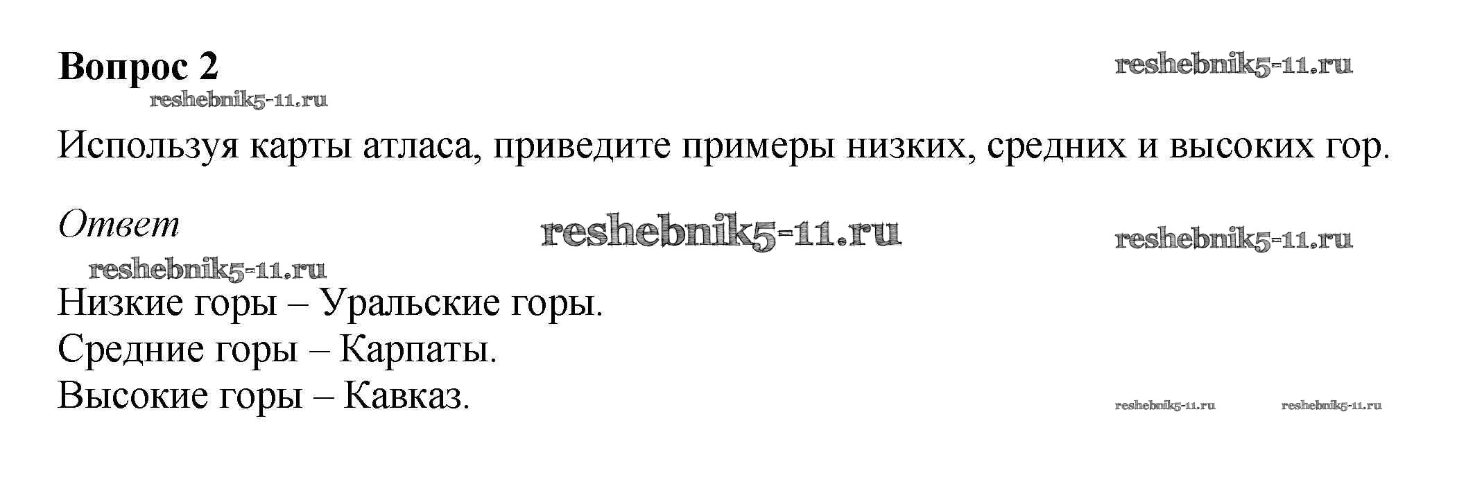 Готовая домашняя работа с ответами по Географии за 5, 6 класс Климанова, Климанов, Ким Учебник Вертикаль Дрофа 2017 ФГОС - Вопросы и задания 2