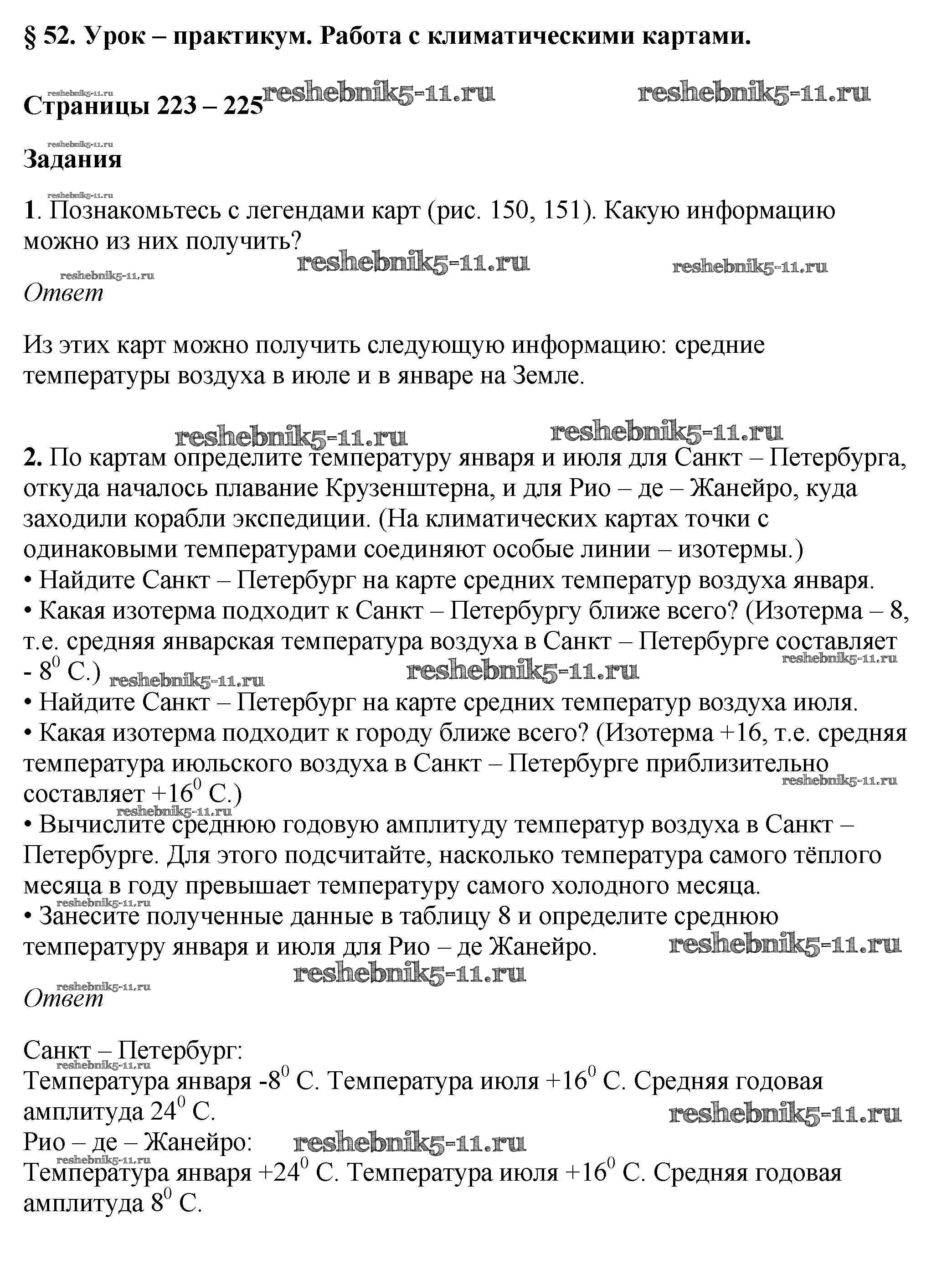 Готовая домашняя работа с ответами по Географии за 5, 6 класс Климанова, Климанов, Ким Учебник Вертикаль Дрофа 2017 ФГОС - Задания стр.223
