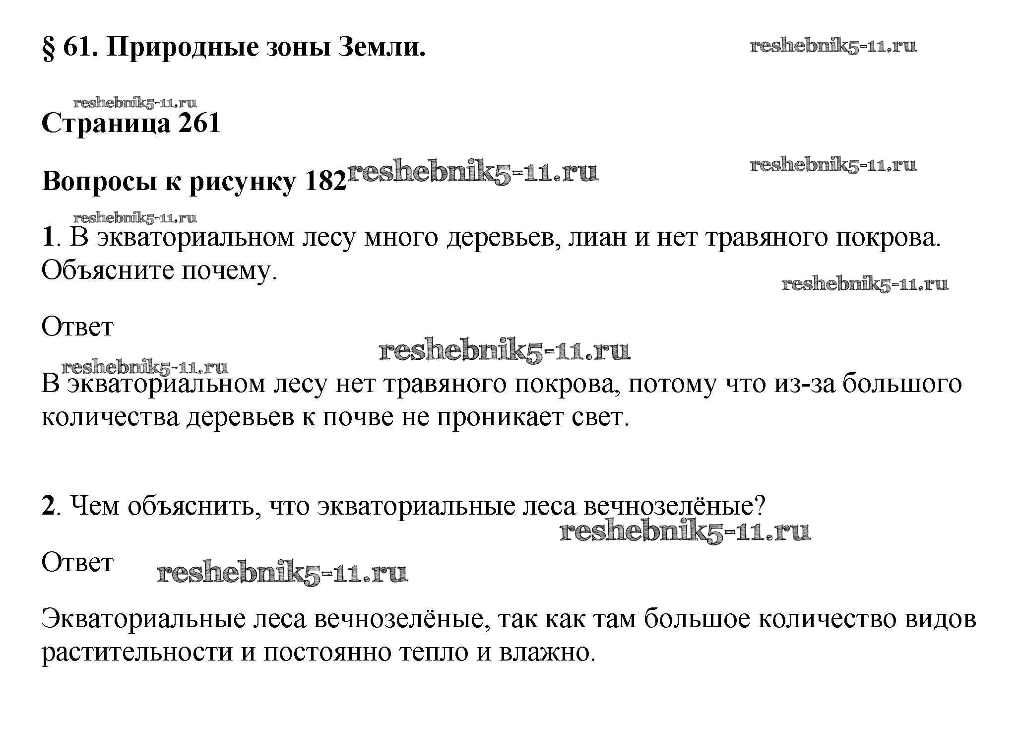 Готовая домашняя работа с ответами по Географии за 5, 6 класс Климанова, Климанов, Ким Учебник Вертикаль Дрофа 2017 ФГОС - Вопросы к рисункам рис. 182