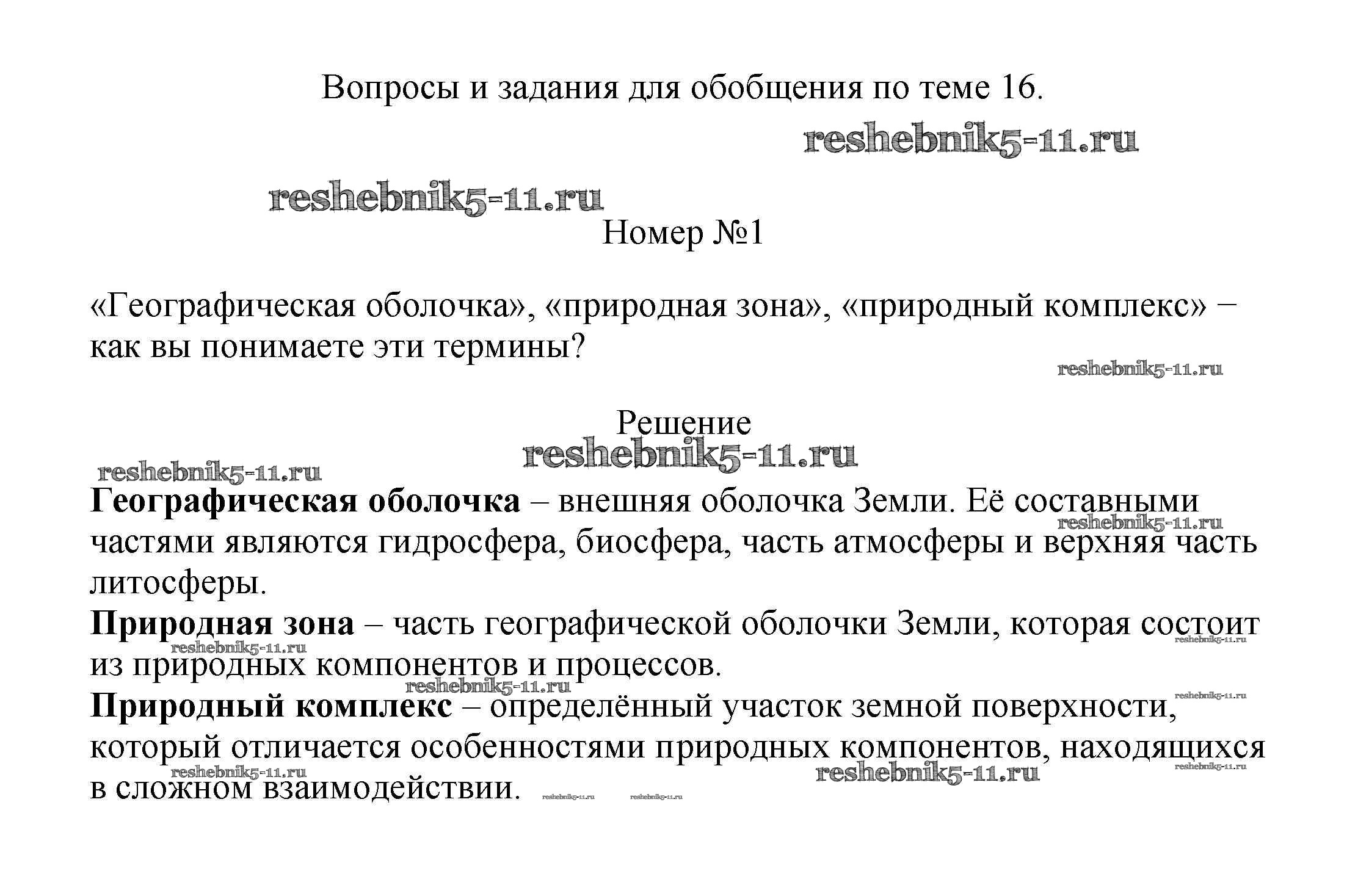 Готовая домашняя работа с ответами по Географии за 5, 6 класс Климанова, Климанов, Ким Учебник Вертикаль Дрофа 2017 ФГОС - Вопросы и задания для обобщения по теме 16 1