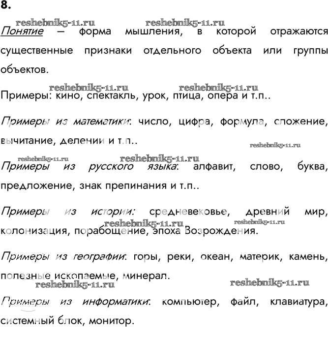 Готовая домашняя работа с ответами по Информатике за 6 класс Босова, Босова Учебник Бином 2016 ФГОС - §7. Как мы познаем окружающий мир 8