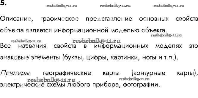 Готовая домашняя работа с ответами по Информатике за 6 класс Босова, Босова Учебник Бином 2016 ФГОС - §9. Информационное моделирование 5