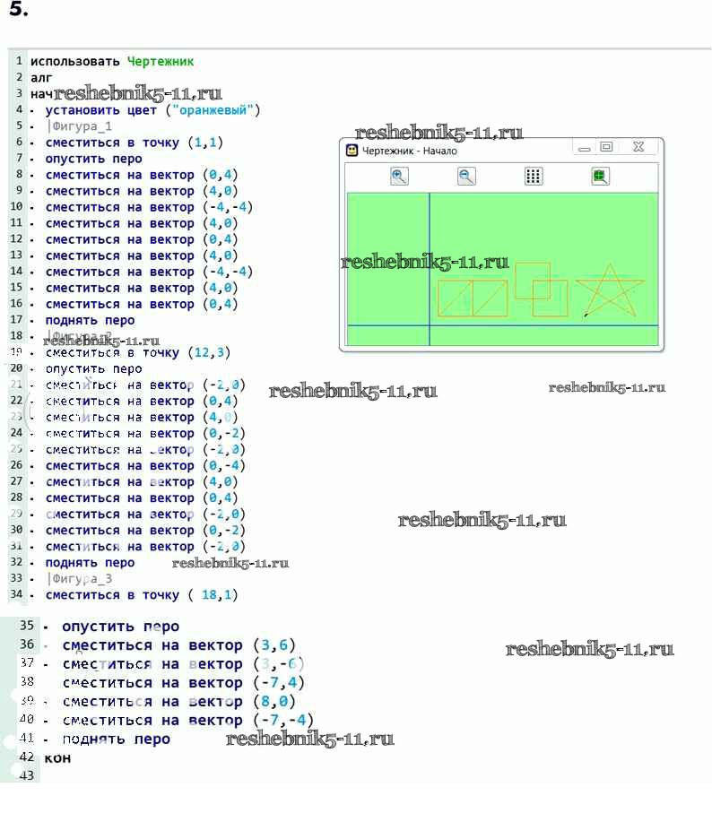 Готовая домашняя работа с ответами по Информатике за 6 класс Босова, Босова Учебник Бином 2016 ФГОС - §18. Управление исполнителем Чертёжник 5