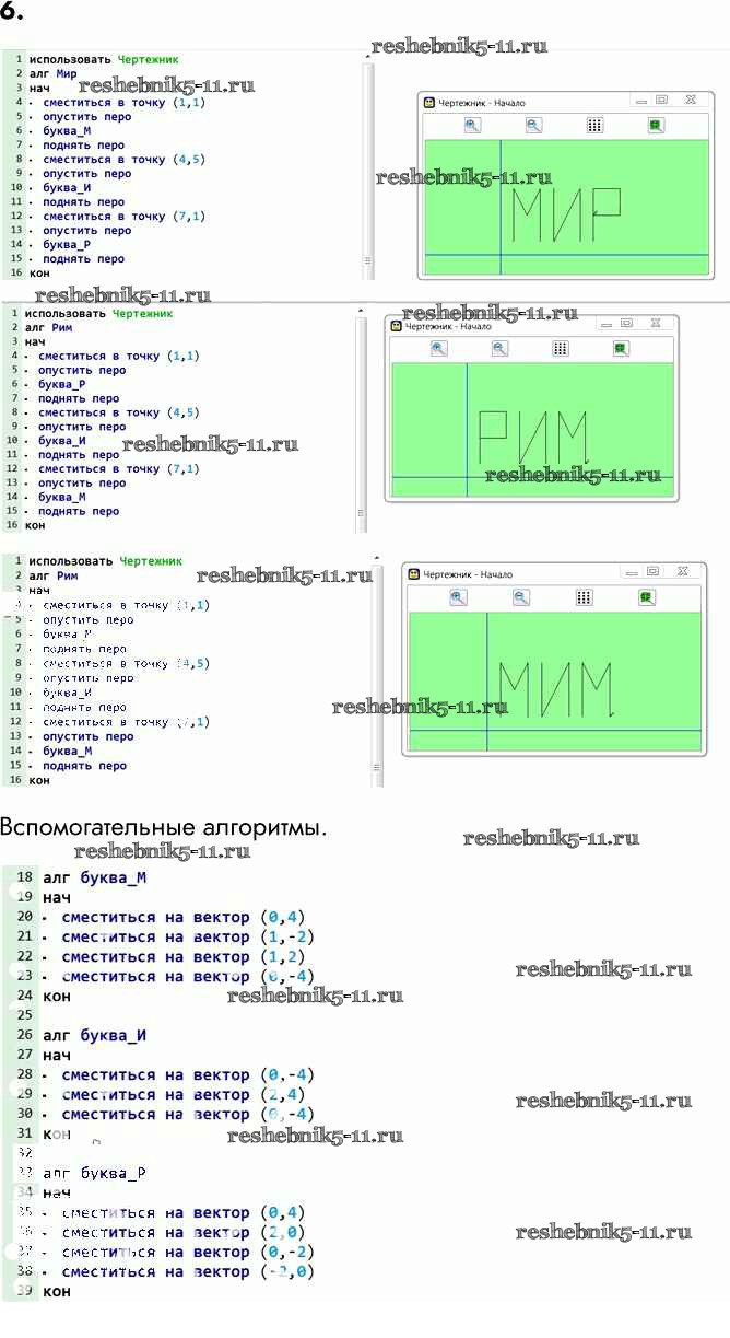 Готовая домашняя работа с ответами по Информатике за 6 класс Босова, Босова Учебник Бином 2016 ФГОС - §18. Управление исполнителем Чертёжник 6