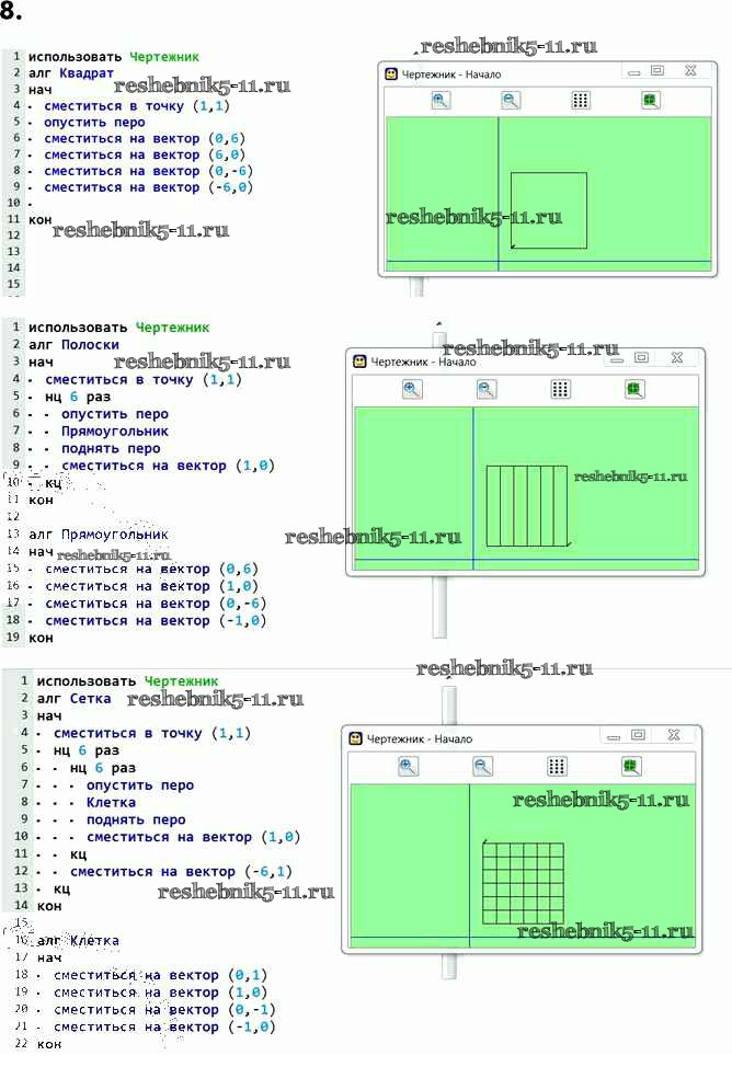 Готовая домашняя работа с ответами по Информатике за 6 класс Босова, Босова Учебник Бином 2016 ФГОС - §18. Управление исполнителем Чертёжник 8
