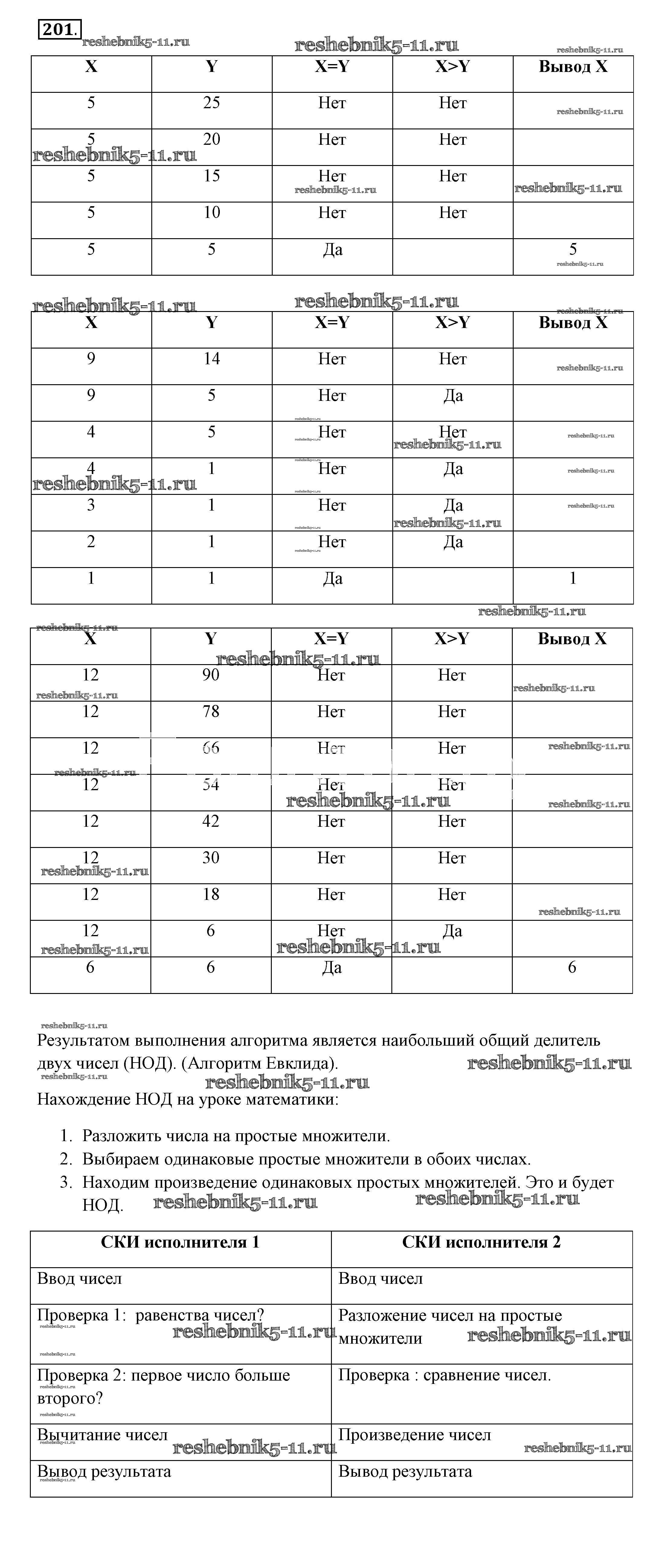 Готовая домашняя работа с ответами по Информатике за 6 класс Босова Рабочая тетрадь Часть 1, 2 Бином 2017 ФГОС - Задания 201