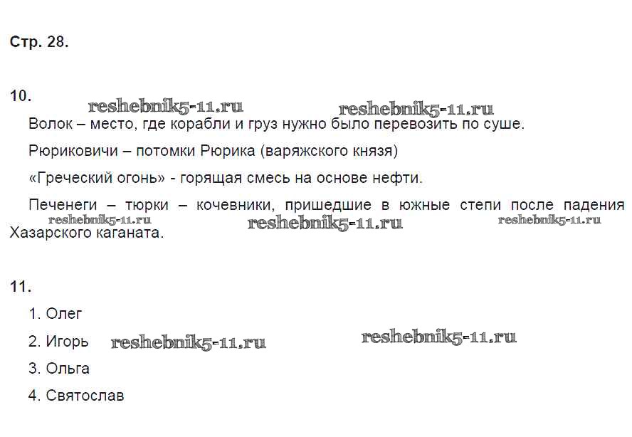 Готовая домашняя работа с ответами по Истории за 6 класс Кочегаров Рабочая тетрадь Инновационная школа Русское слово 2017 ФГОС - Раздел 2. Русь в IX-XII веках стр. 28