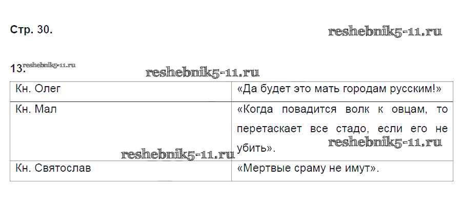 Готовая домашняя работа с ответами по Истории за 6 класс Кочегаров Рабочая тетрадь Инновационная школа Русское слово 2017 ФГОС - Раздел 2. Русь в IX-XII веках стр. 30