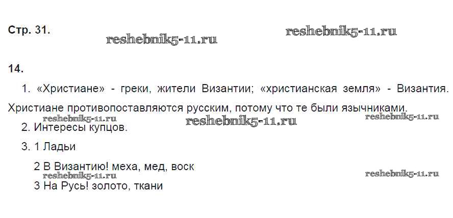 Готовая домашняя работа с ответами по Истории за 6 класс Кочегаров Рабочая тетрадь Инновационная школа Русское слово 2017 ФГОС - Раздел 2. Русь в IX-XII веках стр. 31