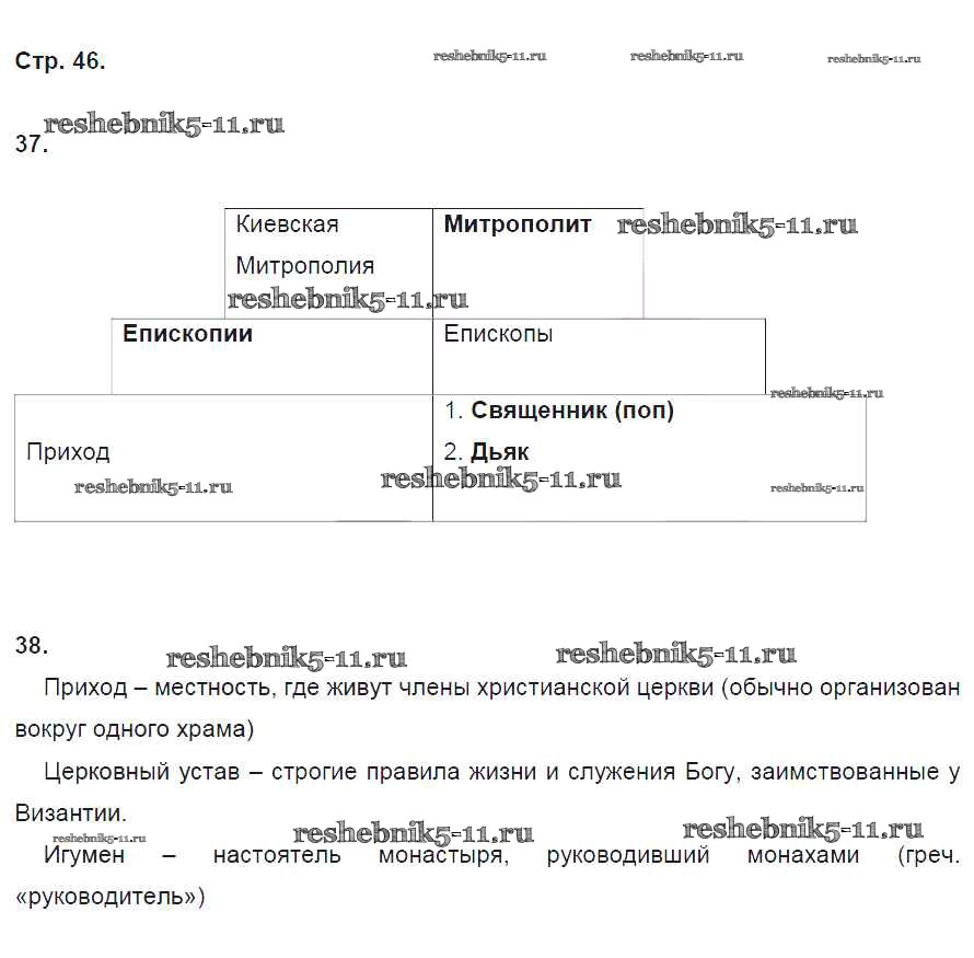 Готовая домашняя работа с ответами по Истории за 6 класс Кочегаров Рабочая тетрадь Инновационная школа Русское слово 2017 ФГОС - Раздел 2. Русь в IX-XII веках стр. 46