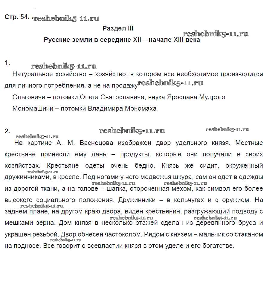 Готовая домашняя работа с ответами по Истории за 6 класс Кочегаров Рабочая тетрадь Инновационная школа Русское слово 2017 ФГОС - Раздел 3. Русские земли в XII-начале XV века стр. 54
