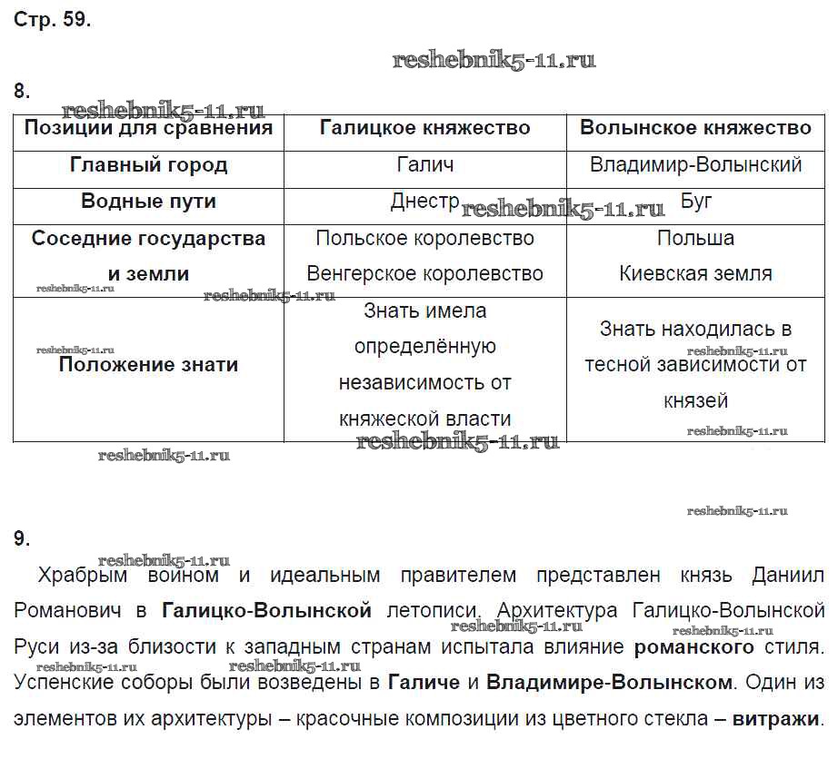 Готовая домашняя работа с ответами по Истории за 6 класс Кочегаров Рабочая тетрадь Инновационная школа Русское слово 2017 ФГОС - Раздел 3. Русские земли в XII-начале XV века стр. 59