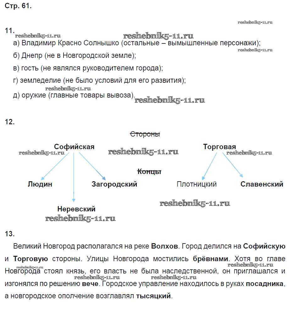 Готовая домашняя работа с ответами по Истории за 6 класс Кочегаров Рабочая тетрадь Инновационная школа Русское слово 2017 ФГОС - Раздел 3. Русские земли в XII-начале XV века стр. 61