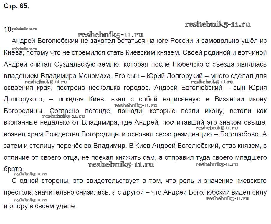 Готовая домашняя работа с ответами по Истории за 6 класс Кочегаров Рабочая тетрадь Инновационная школа Русское слово 2017 ФГОС - Раздел 3. Русские земли в XII-начале XV века стр. 65