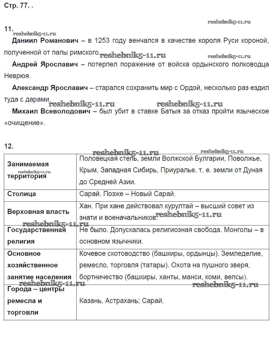 Готовая домашняя работа с ответами по Истории за 6 класс Кочегаров Рабочая тетрадь Инновационная школа Русское слово 2017 ФГОС - Раздел 4. Русь между Востоком и Западом стр. 77