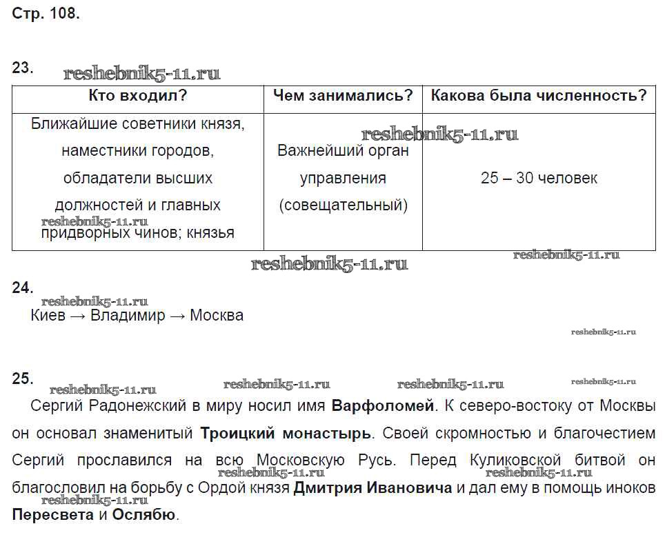Готовая домашняя работа с ответами по Истории за 6 класс Кочегаров Рабочая тетрадь Инновационная школа Русское слово 2017 ФГОС - Раздел 5. Русские земли в середине XIII-XV веке стр. 108