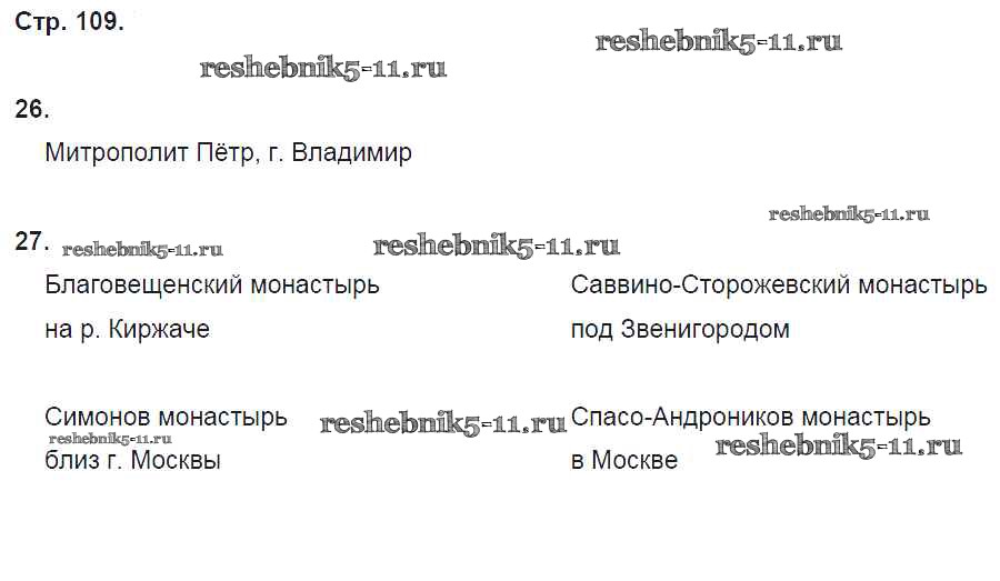 Готовая домашняя работа с ответами по Истории за 6 класс Кочегаров Рабочая тетрадь Инновационная школа Русское слово 2017 ФГОС - Раздел 5. Русские земли в середине XIII-XV веке стр. 109